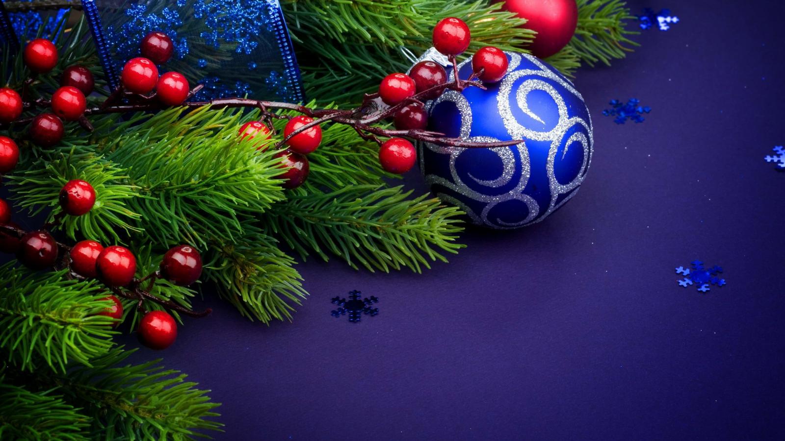 » Обои Ёлочная ветка и синяя игрушка