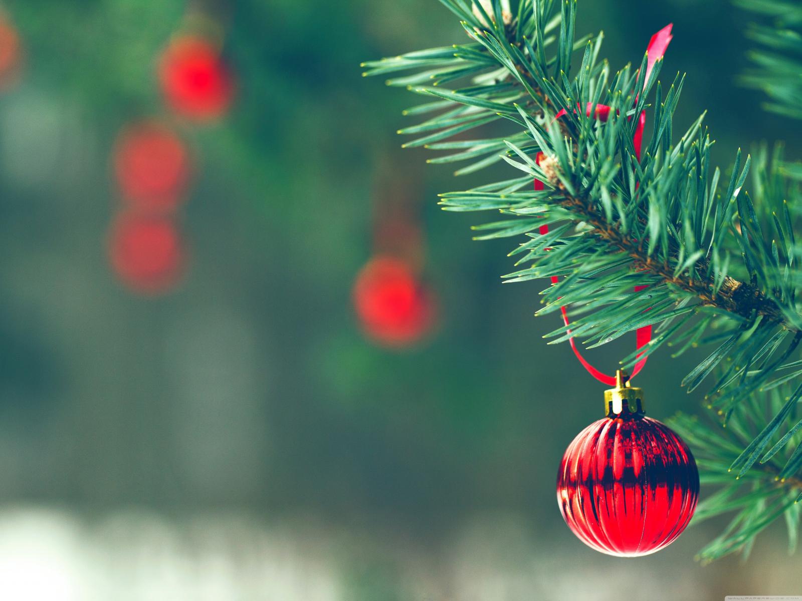Обои Красный шар на ёлке на рождество