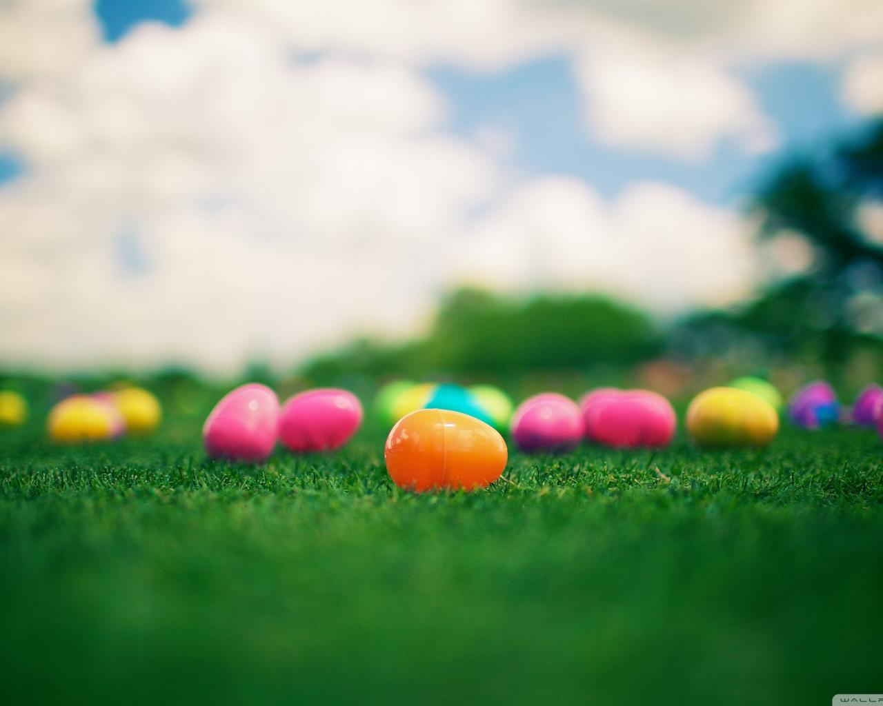 Обои Зеленая трава, Пасхальные яйца