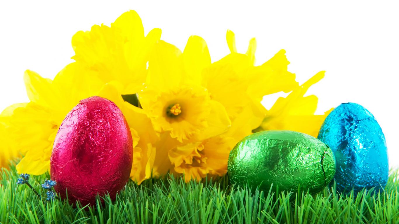 Обои Пасхальные яйца на траве