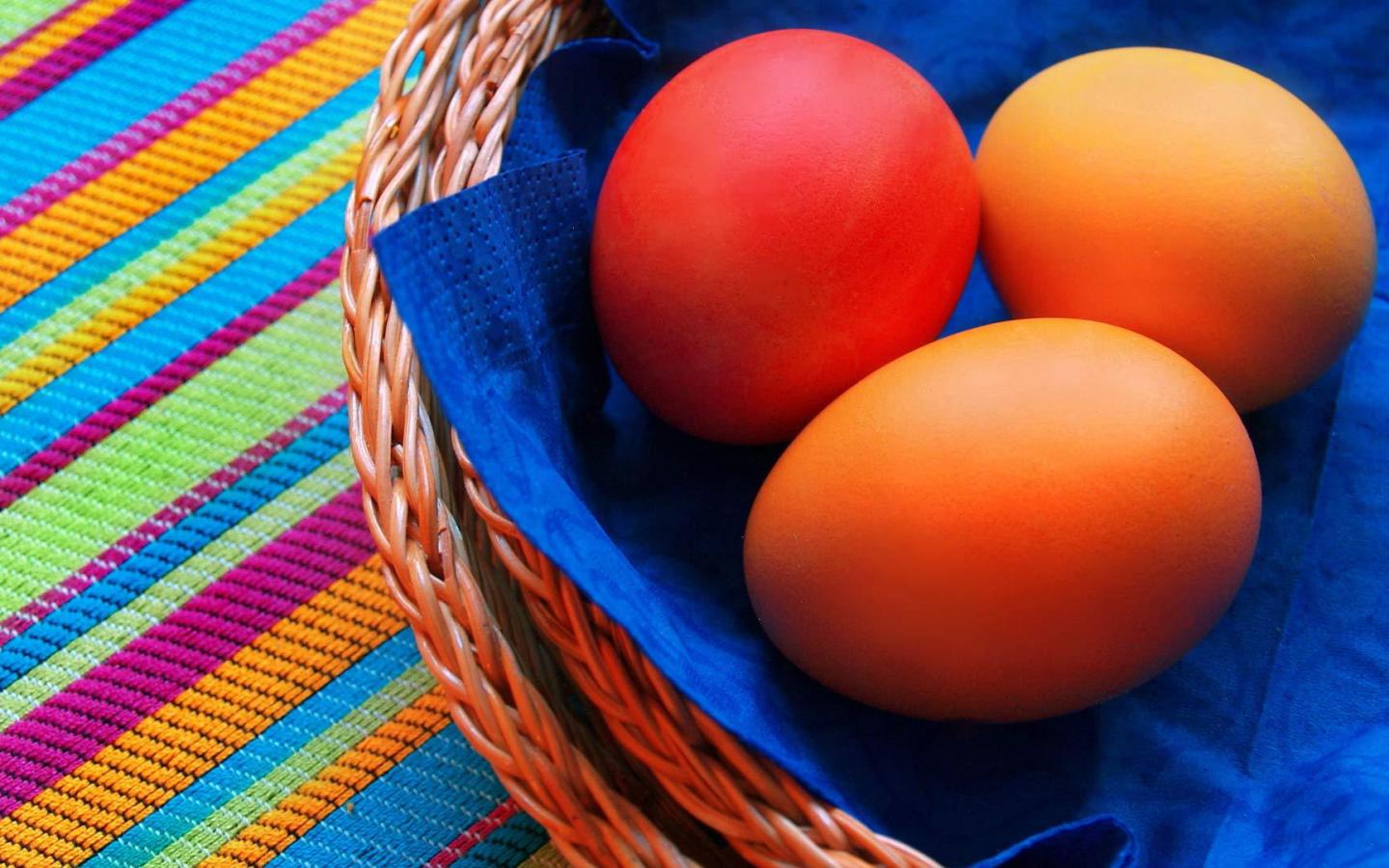 Обои Яйца на синей салфетке на Пасху