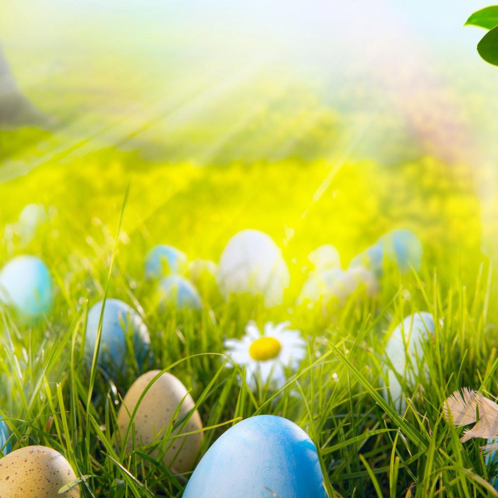 Обои Яйца на лугу на Пасху