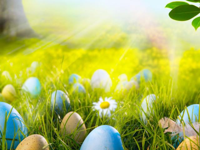 Обои Яйца на лугу на Пасху