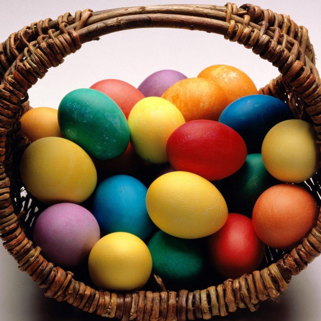 Обои Плетеная корзина с яйцами на Пасху