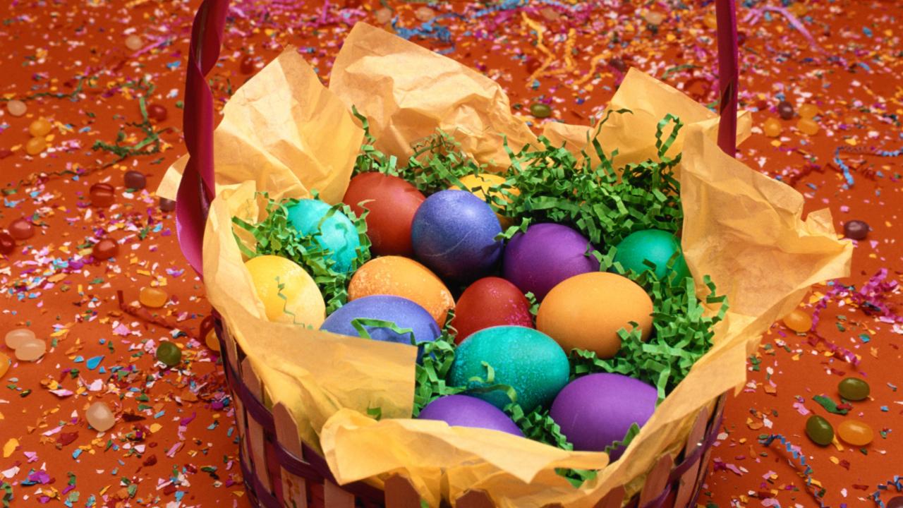 Обои Корзина яиц среди конфети на Пасху