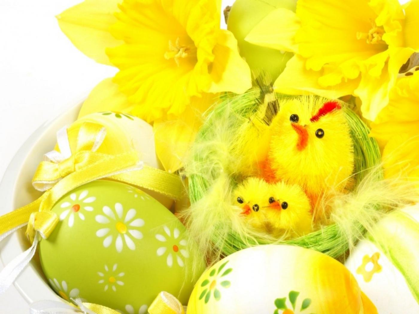 Обои Желтые цыплята на Пасху