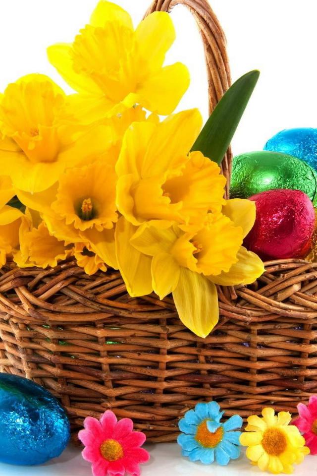 Обои Желтые цветы и яйца на Пасху