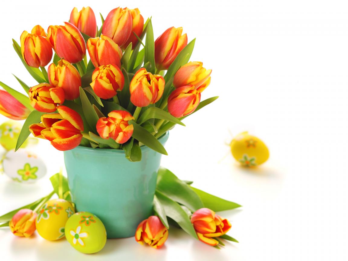 Обои Букет тюльпанов и яйца на Пасху