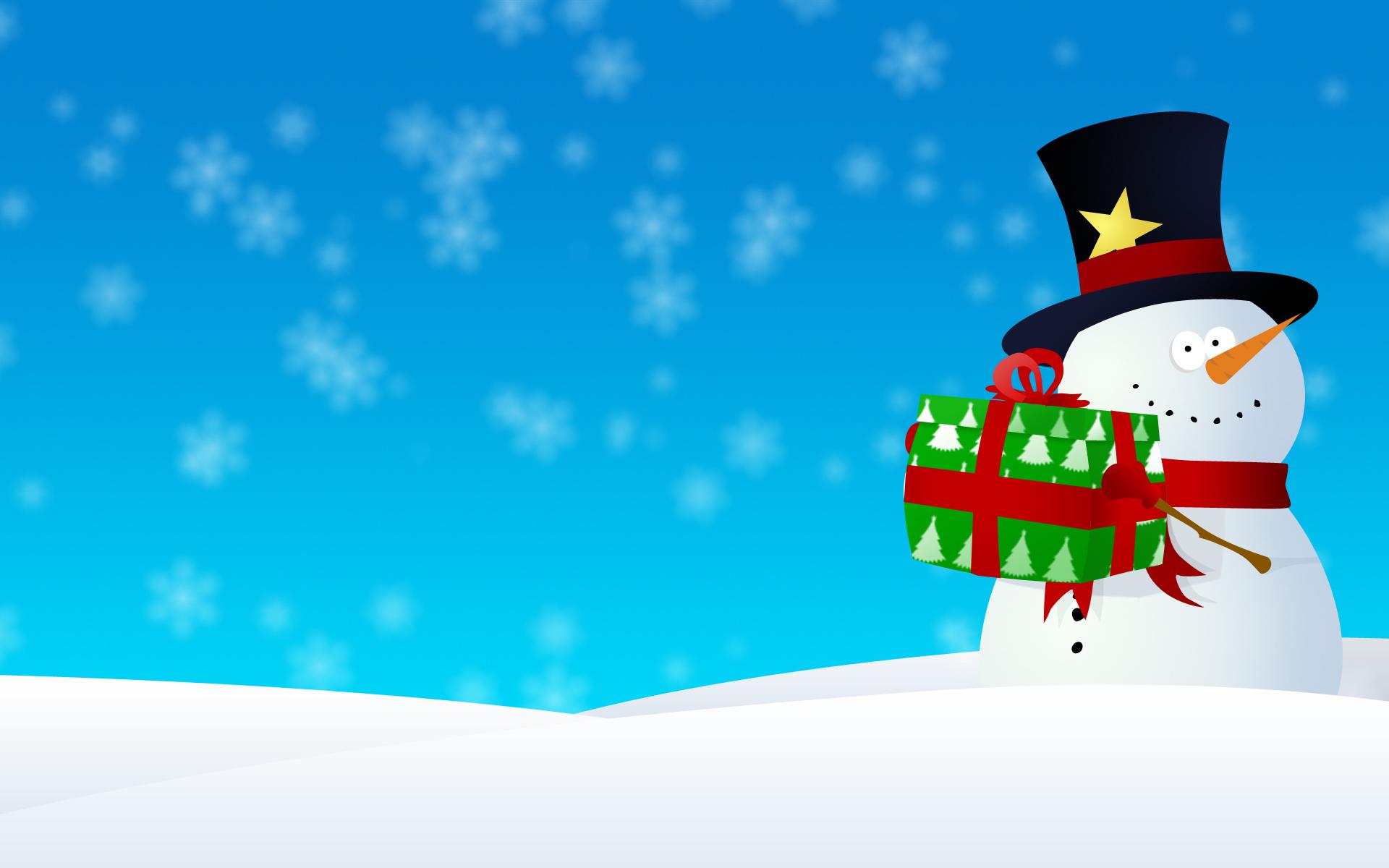 Обои Снеговик в черной шляпе