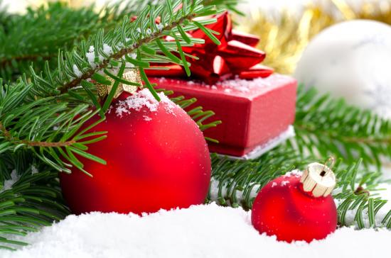 Обои Красные шары на Новый год
