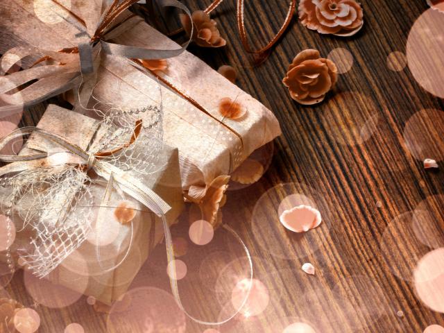Обои Букет и коробки с подарками для любимой на 8 марта
