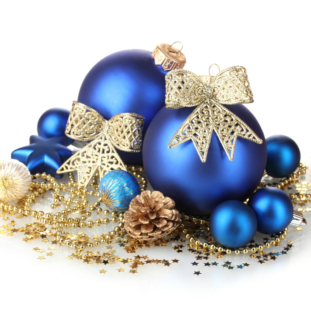 Обои Синие шары на белой ёлке