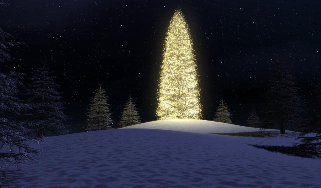 Обои Новогодняя елка в лесу