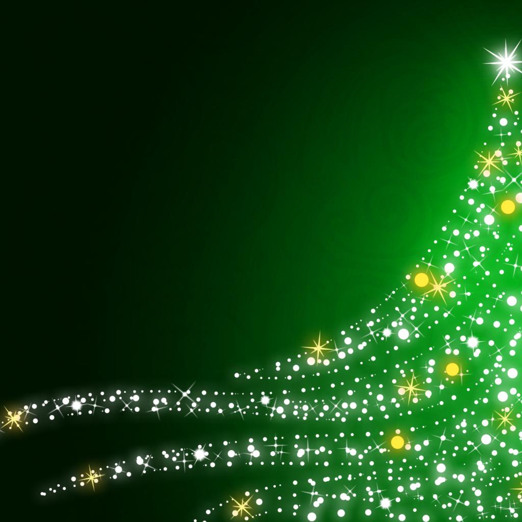 Обои Мерцающая ёлка на рождество, зелёный фон