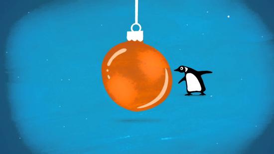 Обои Пингвин и оранжевая ёлочная игрушка на рождество