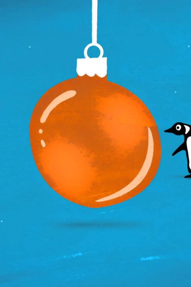 Обои Пингвин и оранжевая ёлочная игрушка на рождество