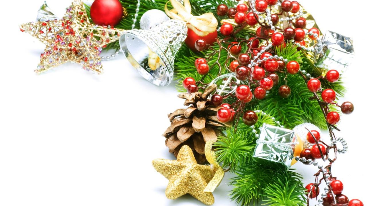 Обои Украшенная ёлочная ветка на рождество