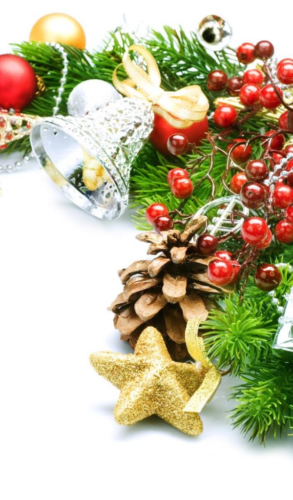 Обои Украшенная ёлочная ветка на рождество
