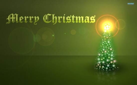 Обои Зелёная картинка с мерцающей ёлкой на рождество