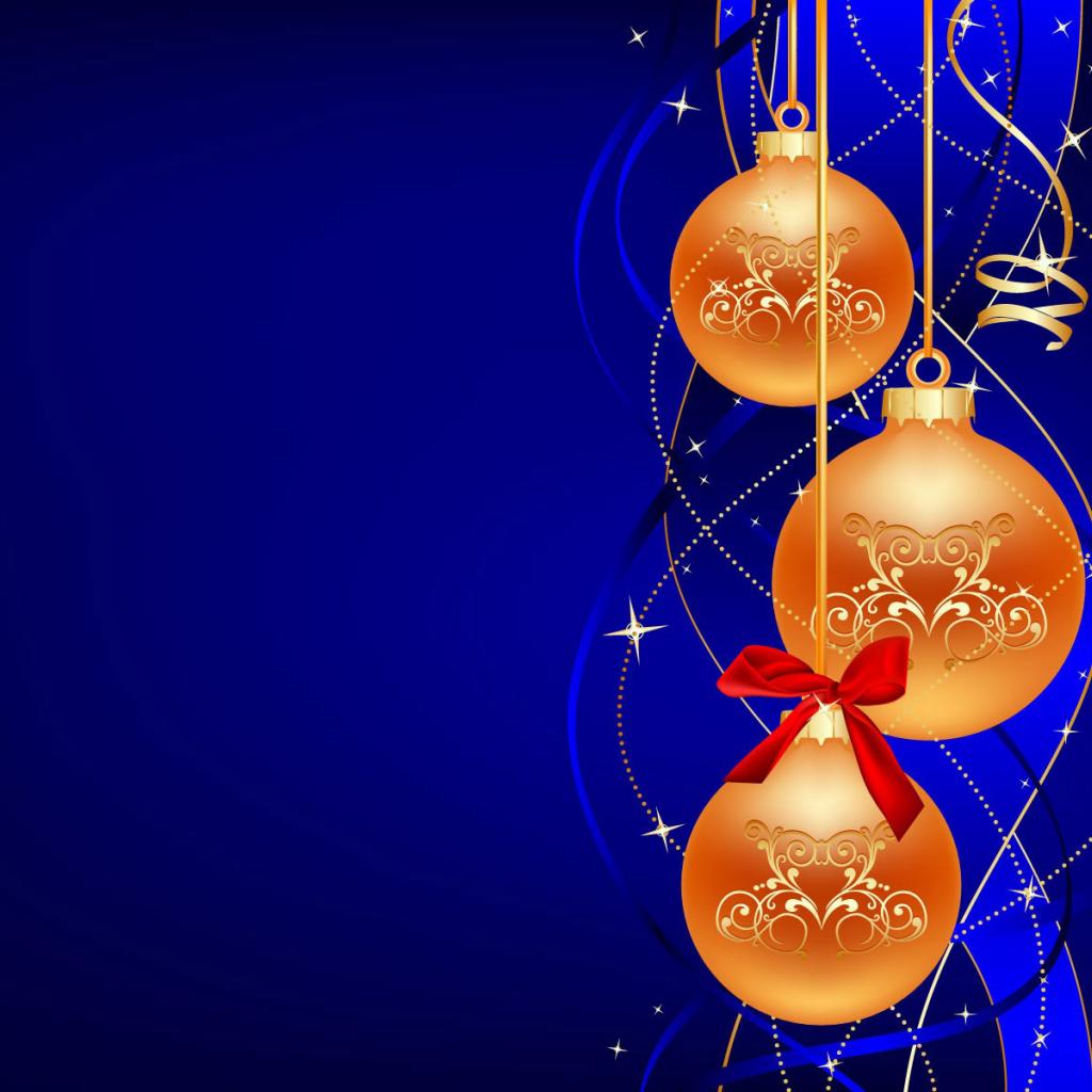 Обои Золотые шары на синем фоне на рождество