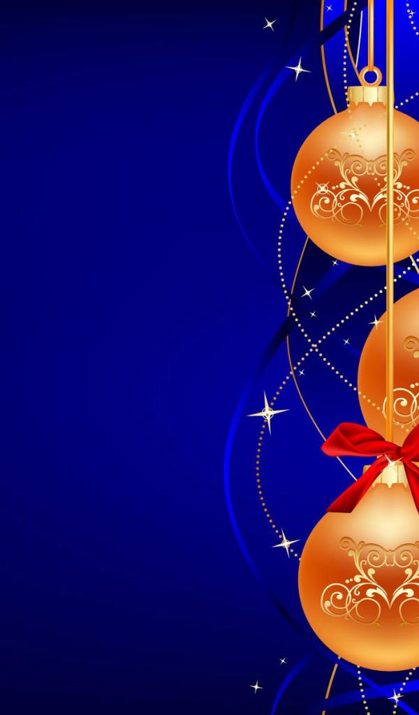 Обои Золотые шары на синем фоне на рождество