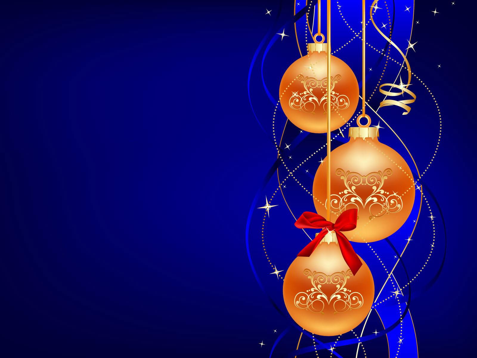 Обои Золотые шары на синем фоне на рождество