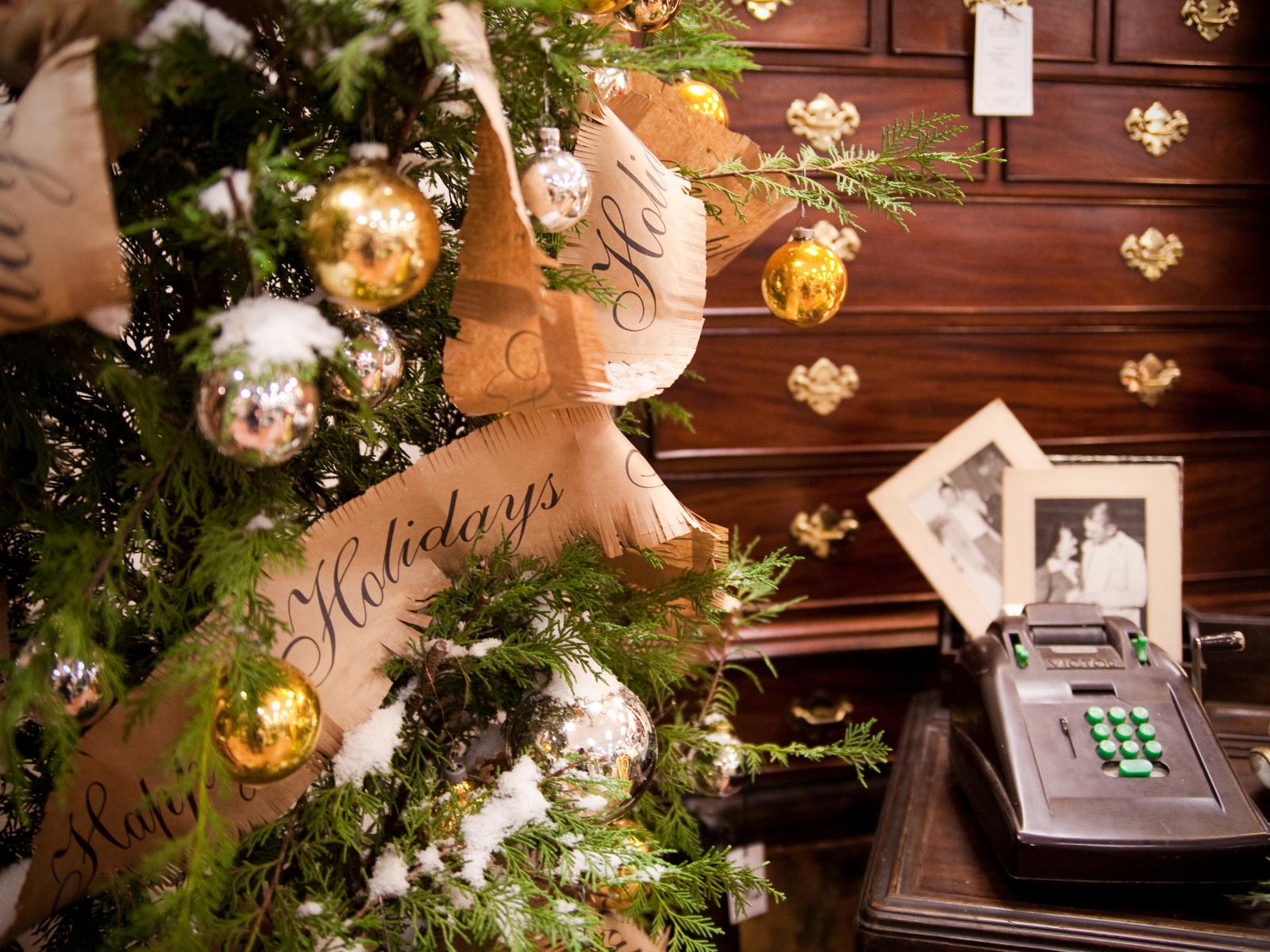 Обои Заснеженная ёлка в уютной комнате на рождество