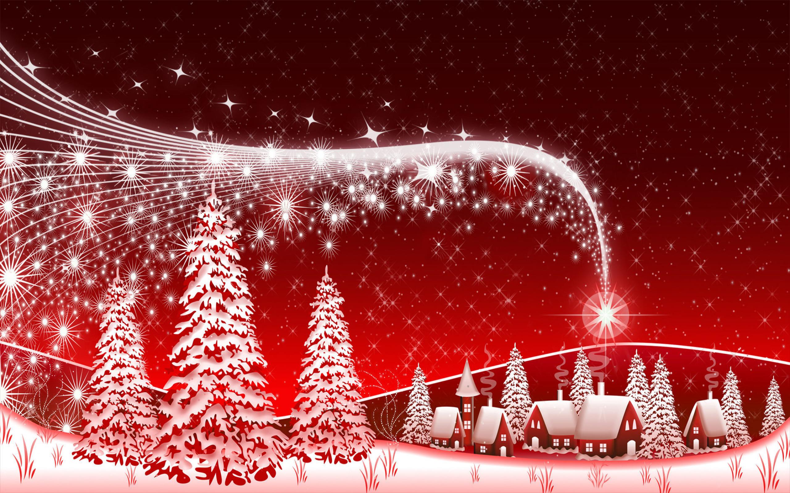 Обои Звезда в небе на красном фоне на рождество