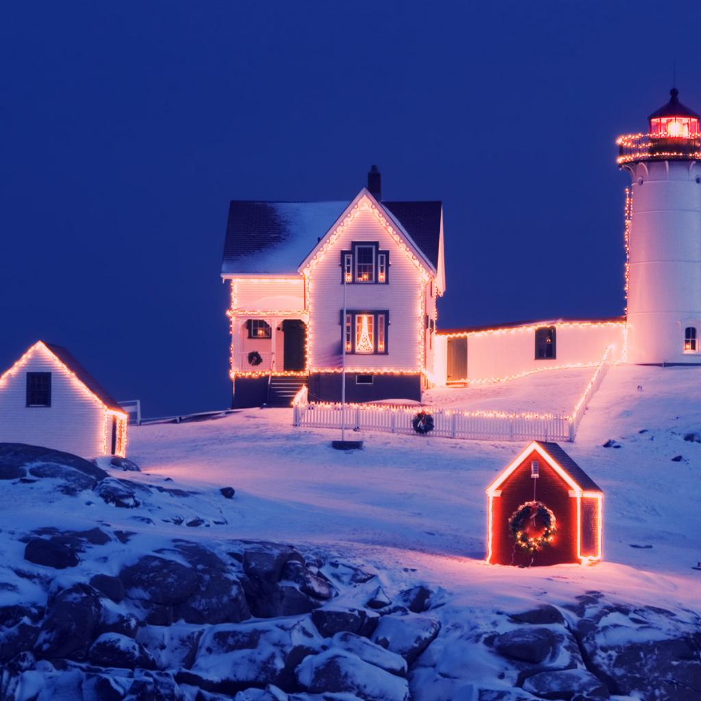 Обои Красиво украшенный дом с маяком на рождество