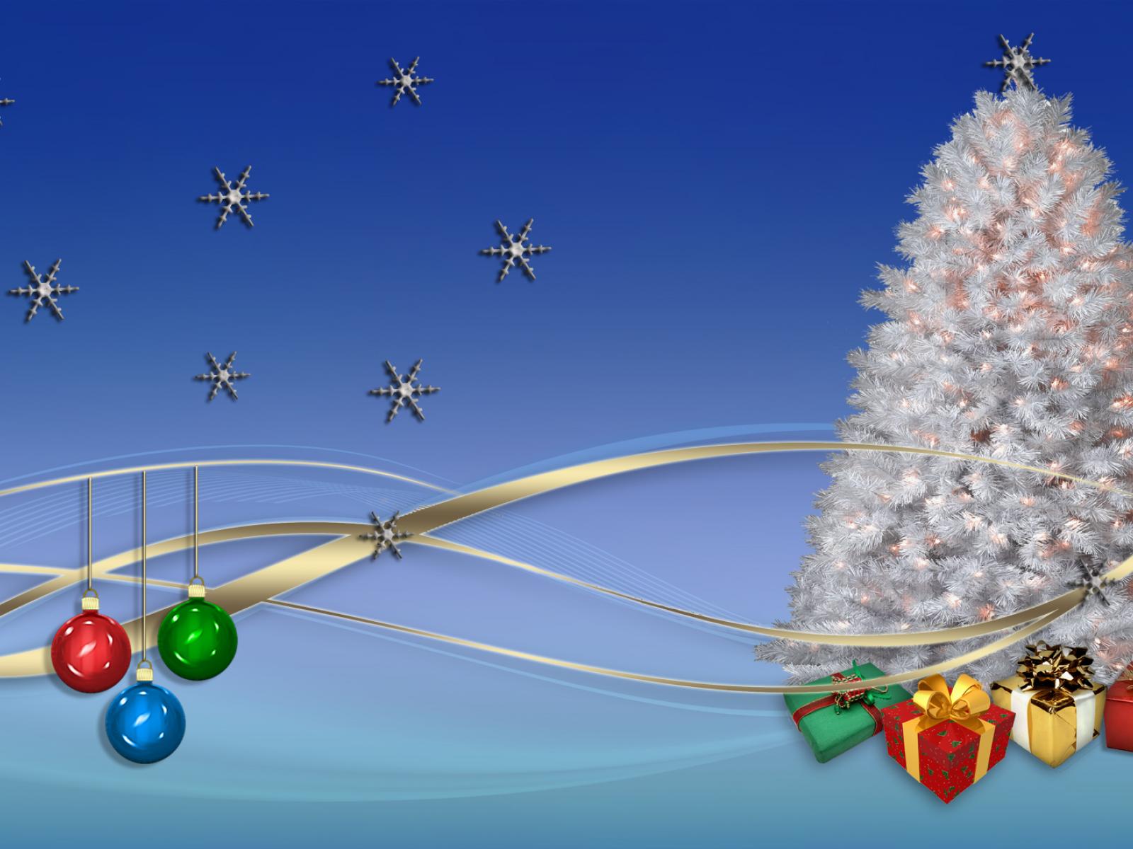 Обои Ёлка, подарки и звёзды на голубом фоне на рождество