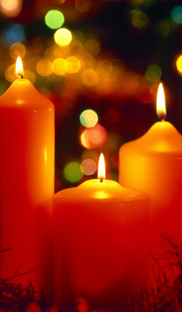 Обои Горящие красные свечи на фоне гирлянды на рождество