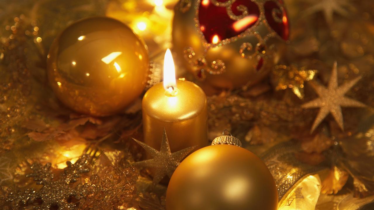 Обои Украшения золотого цвета на рождество
