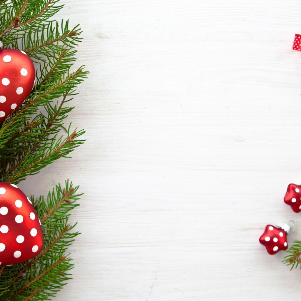 Обои Ёлочные игрушки в виде сердечек и звёздочек на рождество