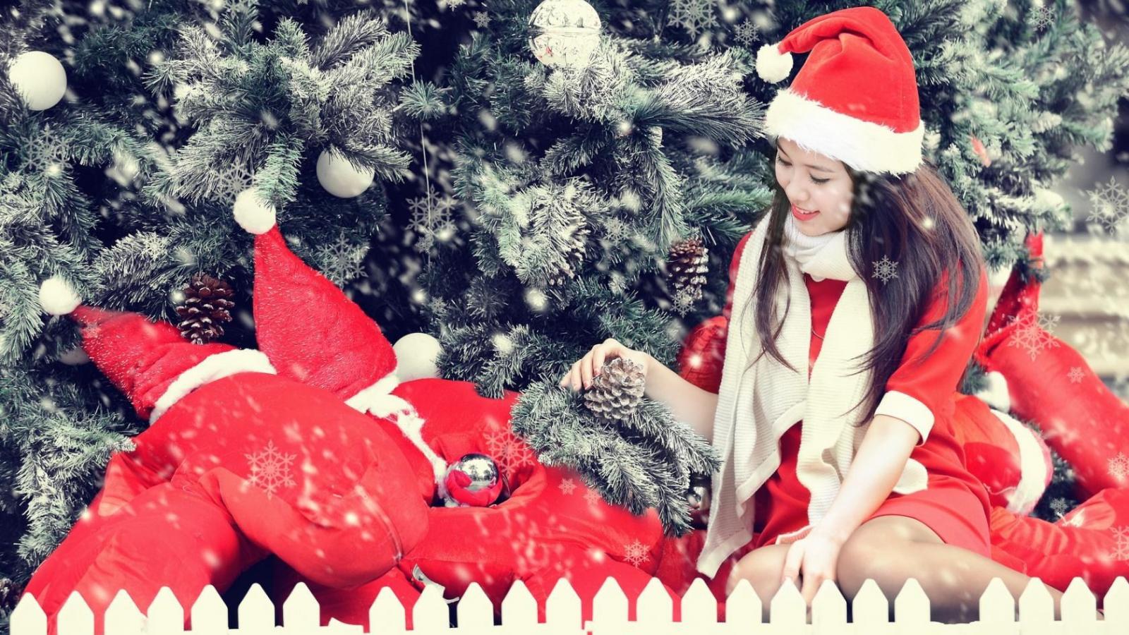 Обои Девочка в костюме Санта клауса