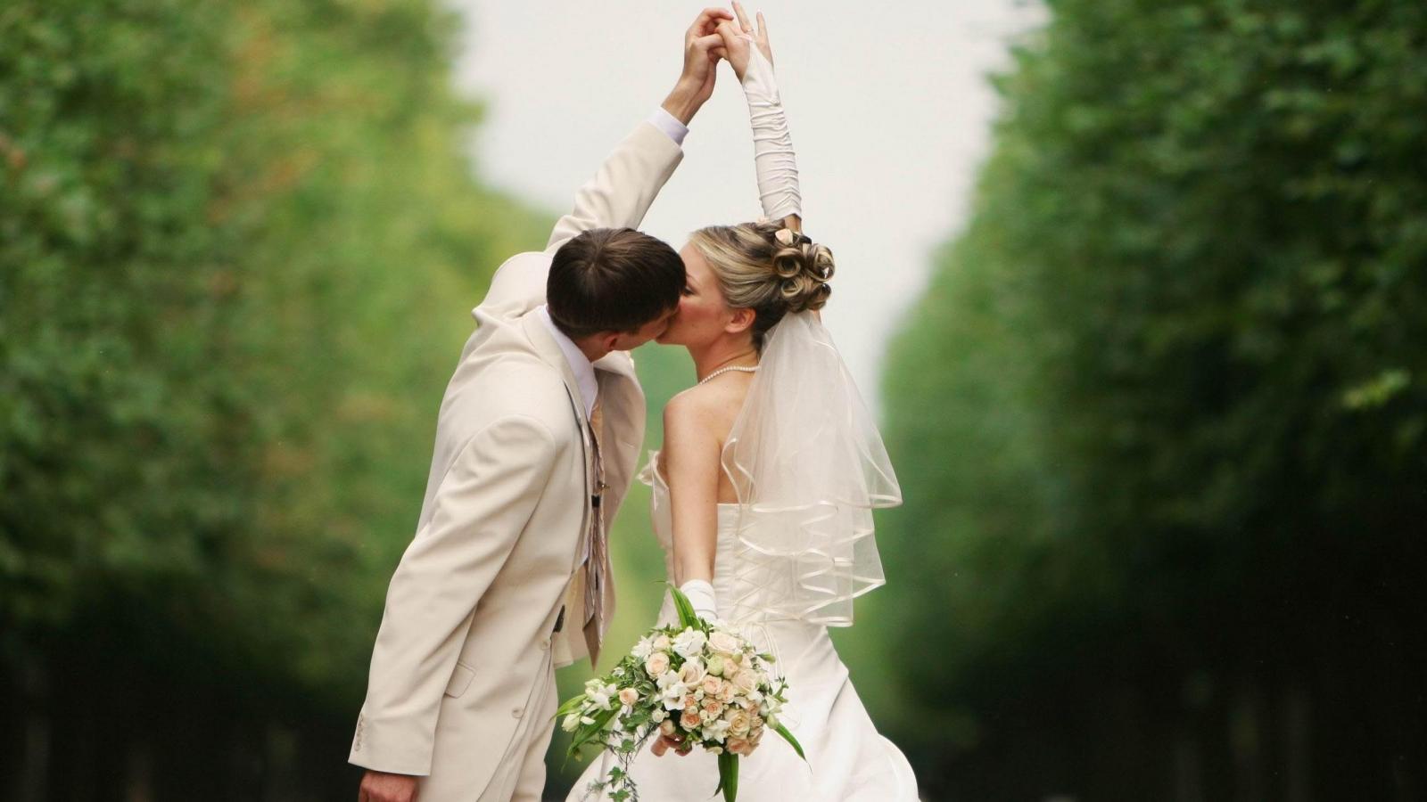 Обои Поцелуй жениха и невесты