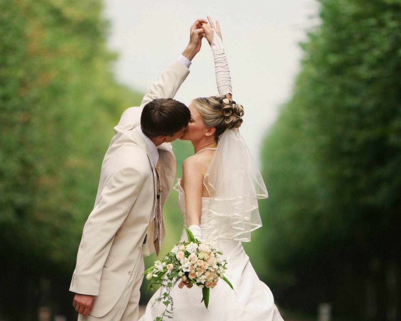 Обои Поцелуй жениха и невесты