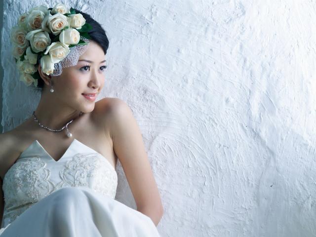 Обои Невеста у белой стены
