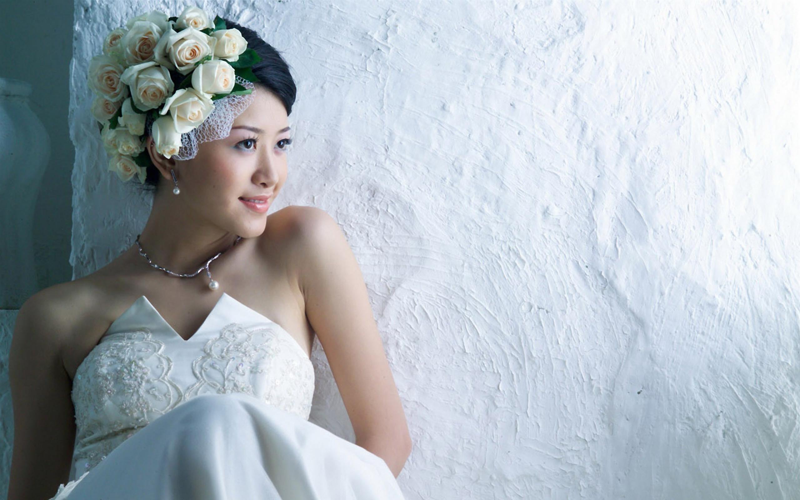 Обои Невеста у белой стены