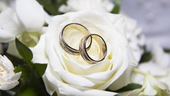 Обои Красивые белые розы и свадебные кольца