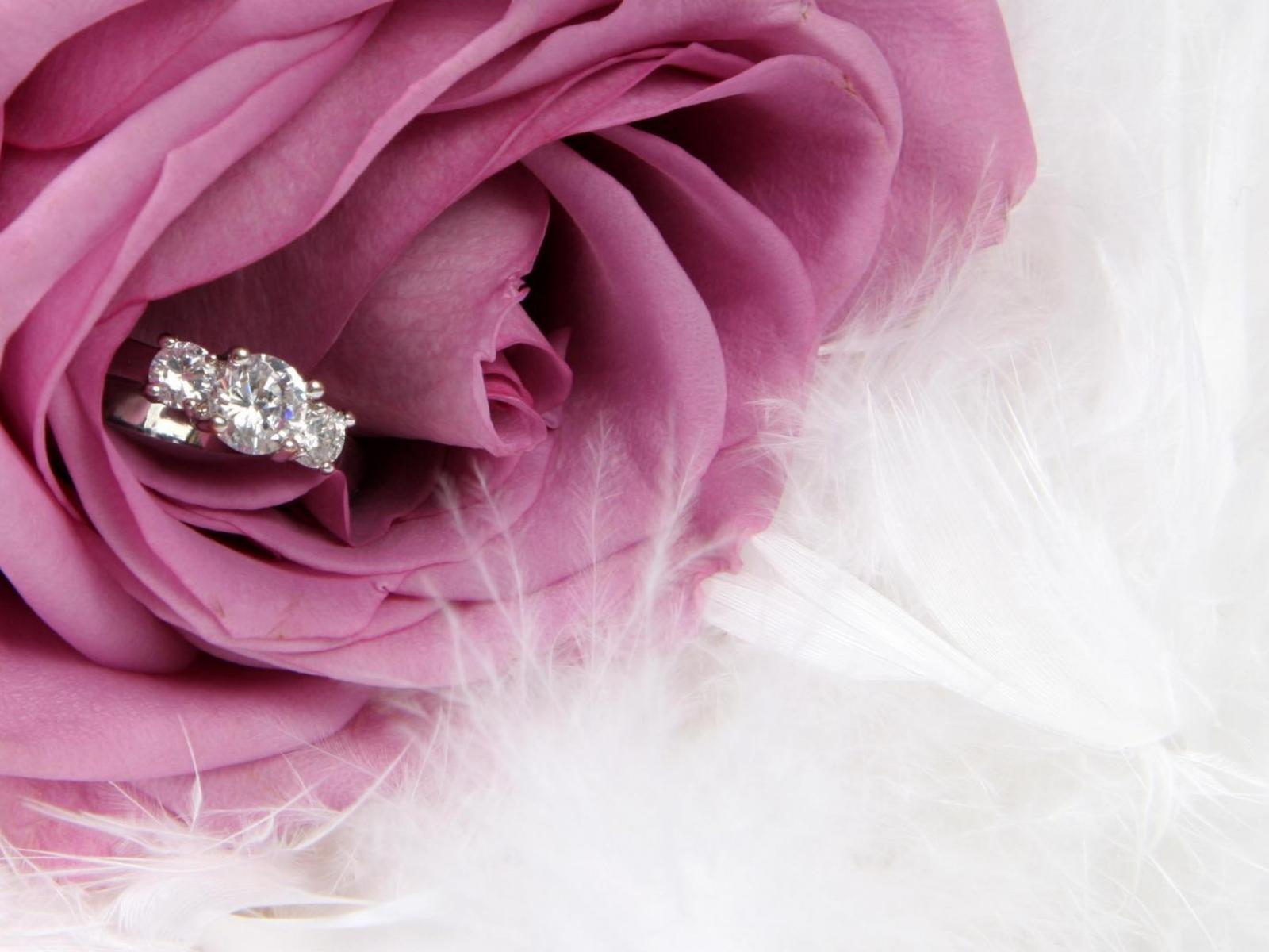 Обои Фиолетовая роза и кольцо, предложение руки и сердца