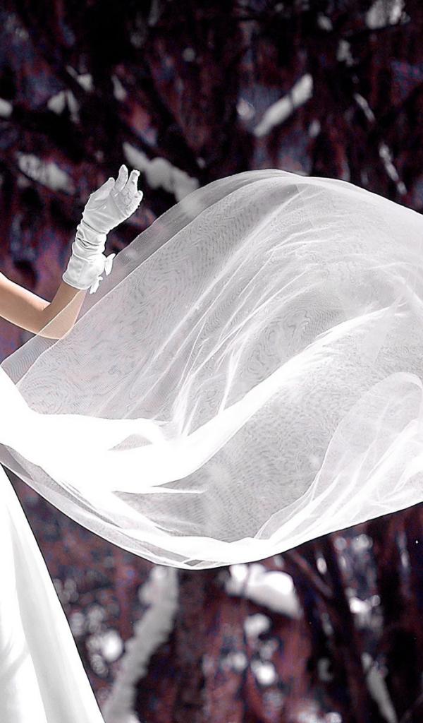 Обои Невеста в свадебном платье на снегу