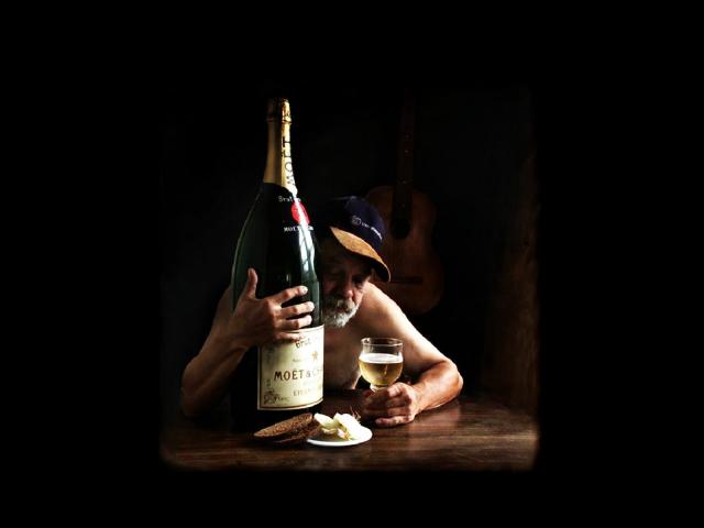 Обои Мужик с большой бутылкой шампанского