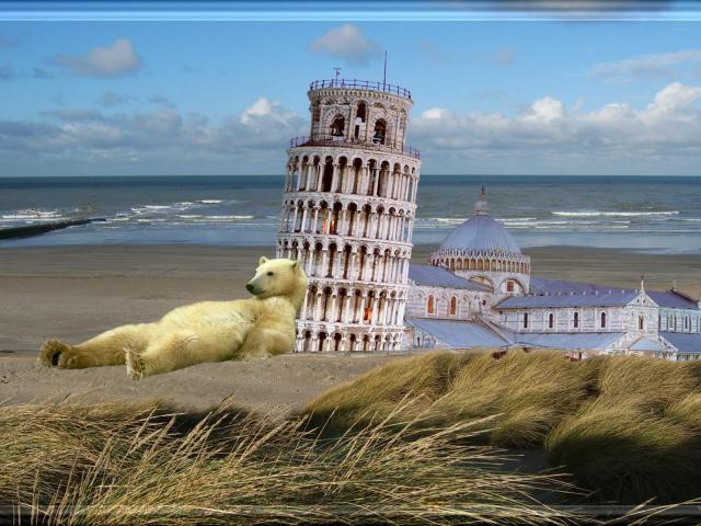 Обои Белый медведь у Пизанской башни
