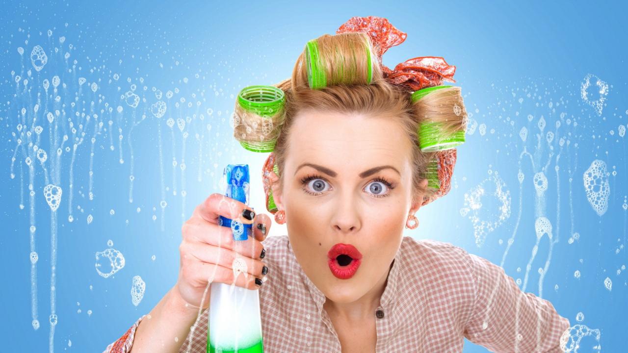Обои Девушка моет окно
