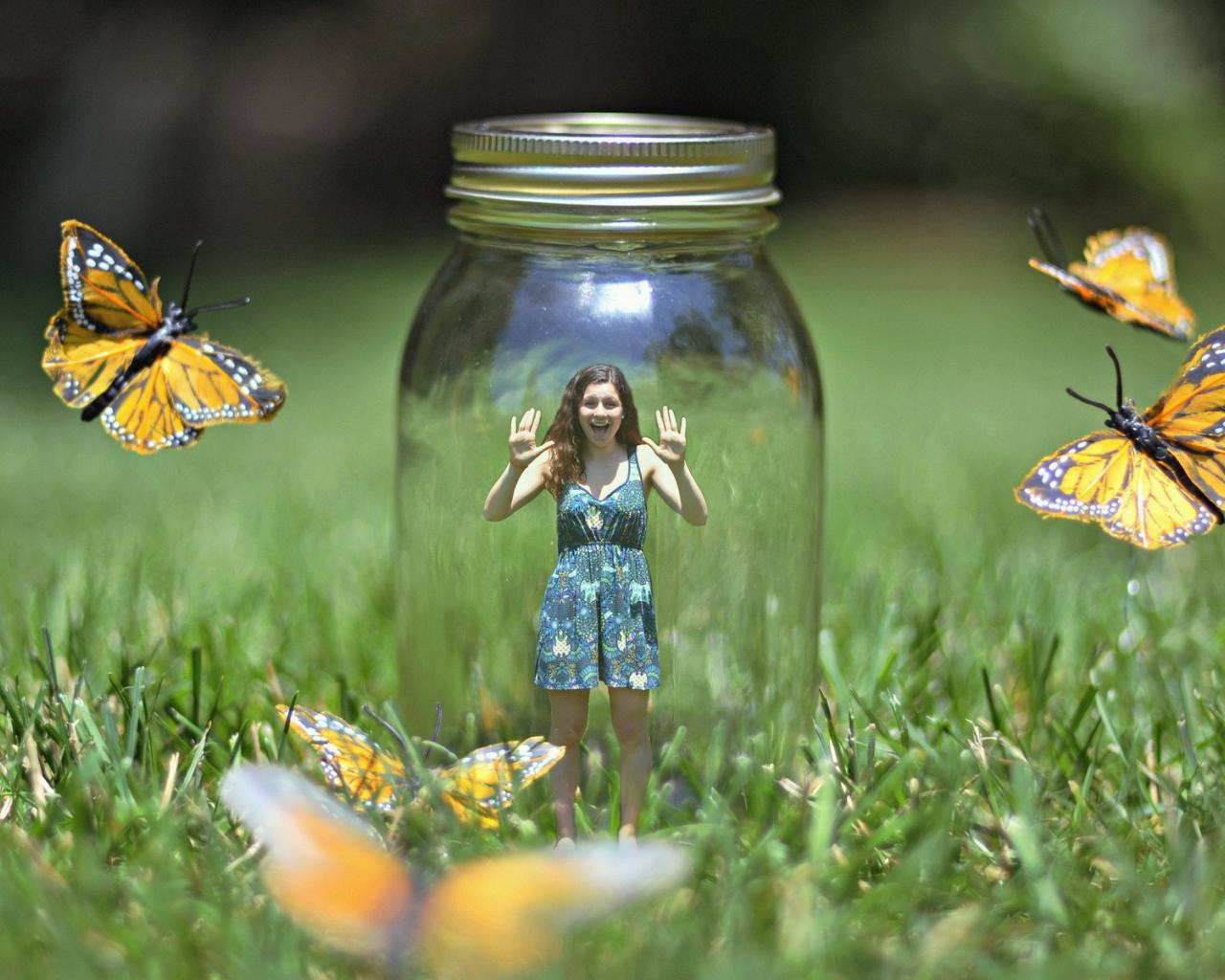 Обои Девочка в банке