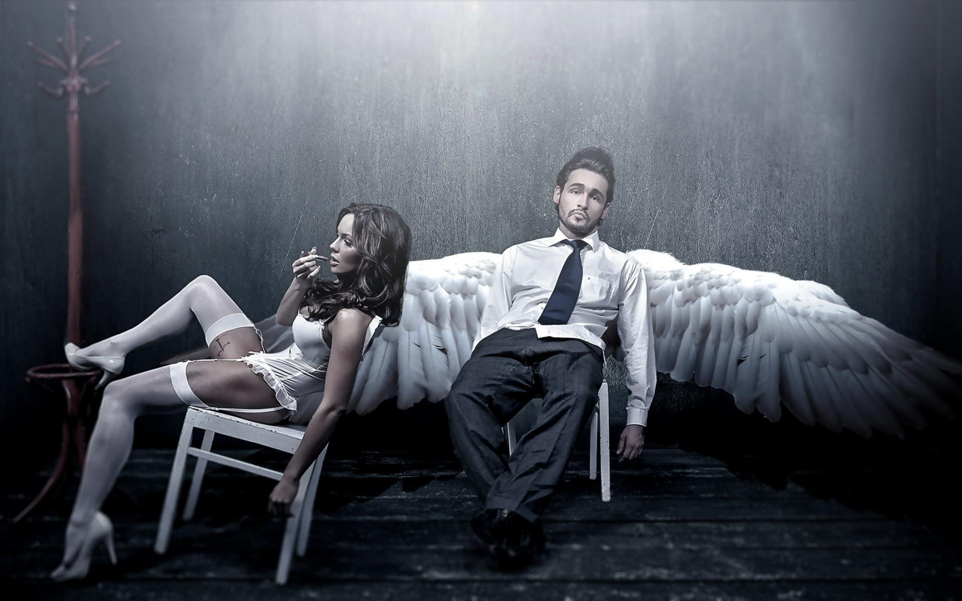 Обои крылья, ангел, шутка