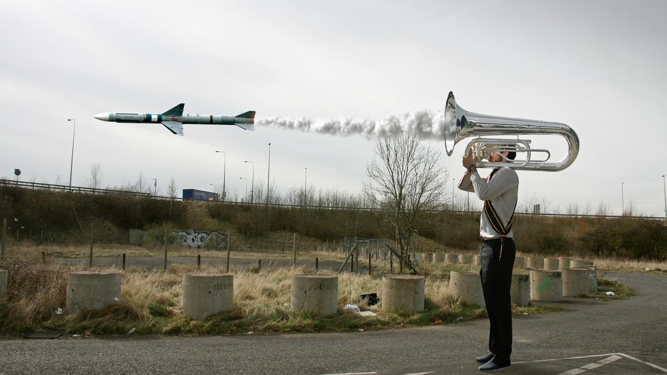 Обои Парень, шутка, ракета
