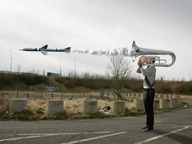 Обои Парень, шутка, ракета