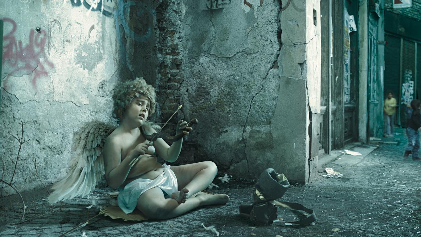 Обои Улица, ангел, шутка