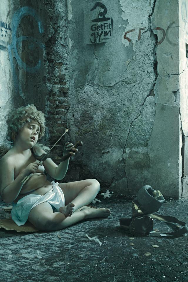 Обои Улица, ангел, шутка